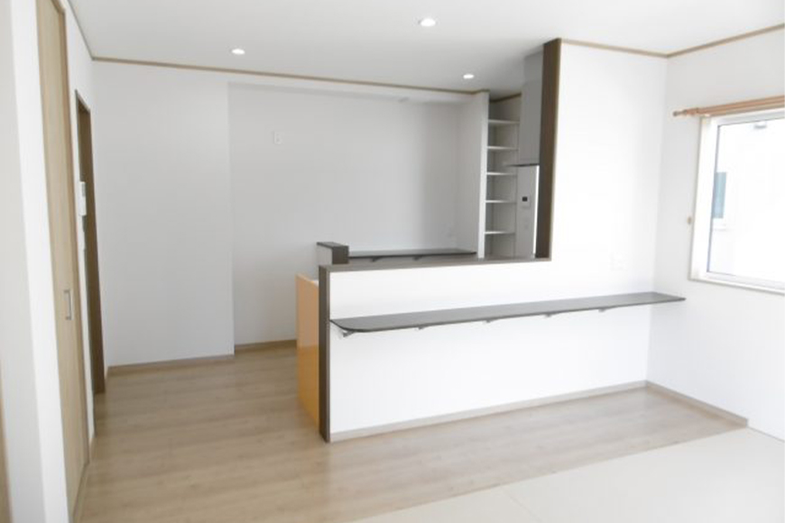 リビングダイニングは施主様こだわりの和紙畳、夕食は畳の上でくつろぎの時間をすごします。和紙畳は色あせしにくく耐久性に優れていてお勧めです。