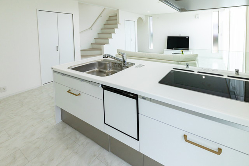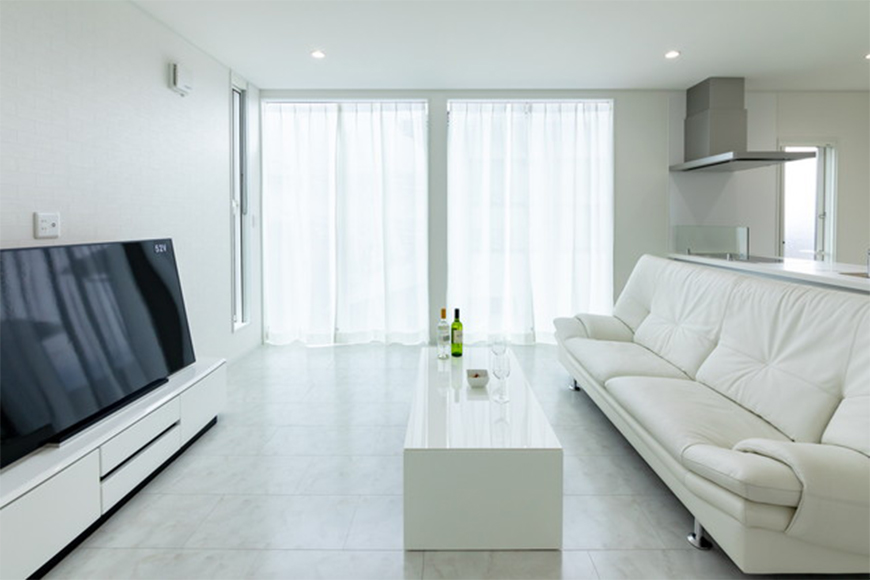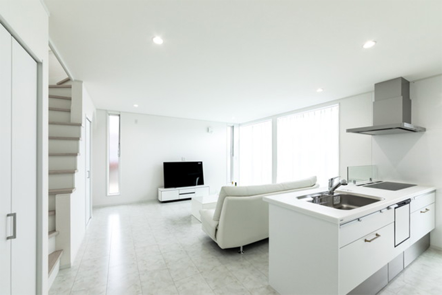 白を基調とした内外装に各部屋の大きなFIX窓など開放感たっぷりの住まいです、バルコニーの強化ガラスの手摺もお施主様のこだわりです。